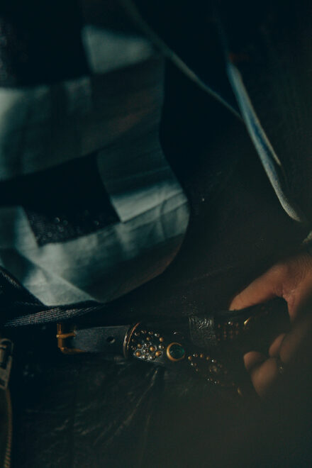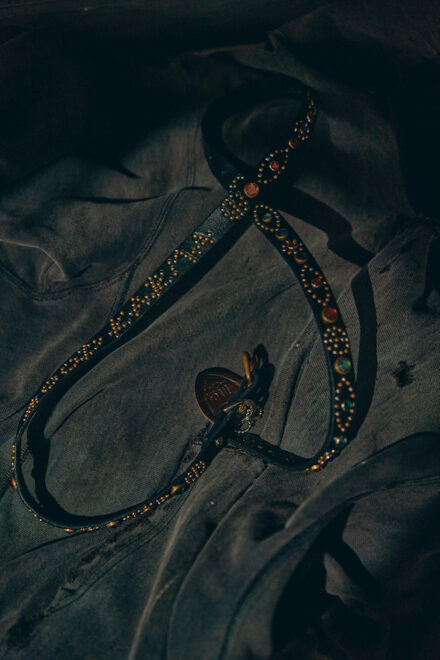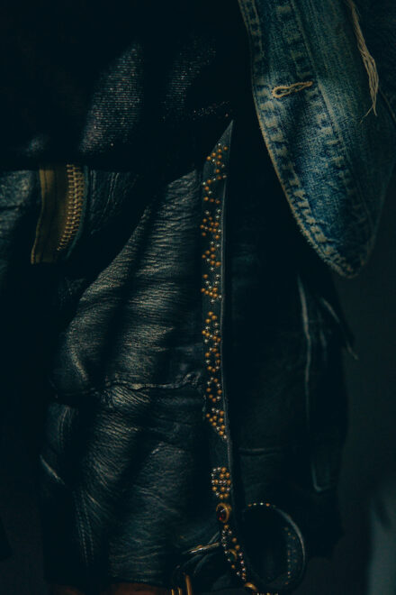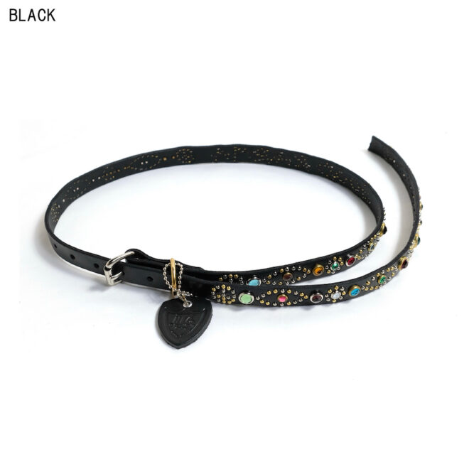 HTCのナローベルトで文字やピースマークのスタッズを打ったモデルは今までに存在して居おらず(太ベルトにはあります)、嫌がる職人さんを無理やり説得し完成に至ったと話すデザイナー『橘氏』による、スペシャルなアイテムですので、ぜひ手にとっていただければなと思います。