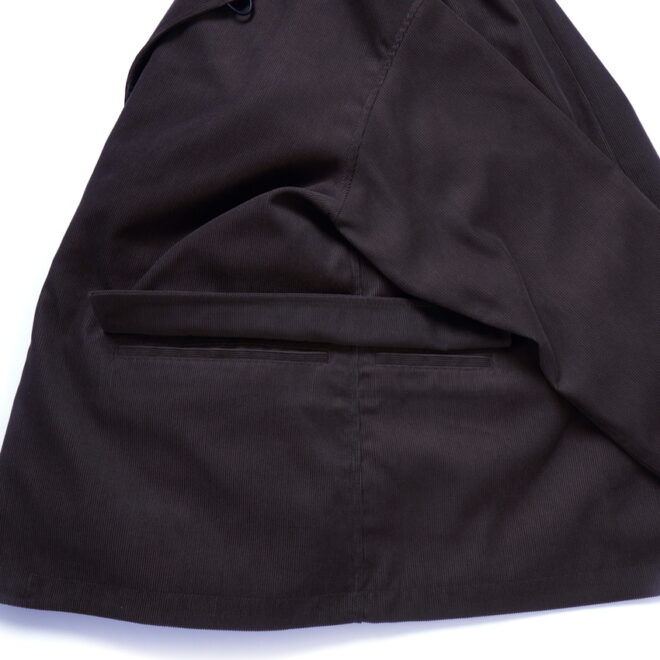 上品な表面感を意識した細コールのコーデュロイ素材を使用。