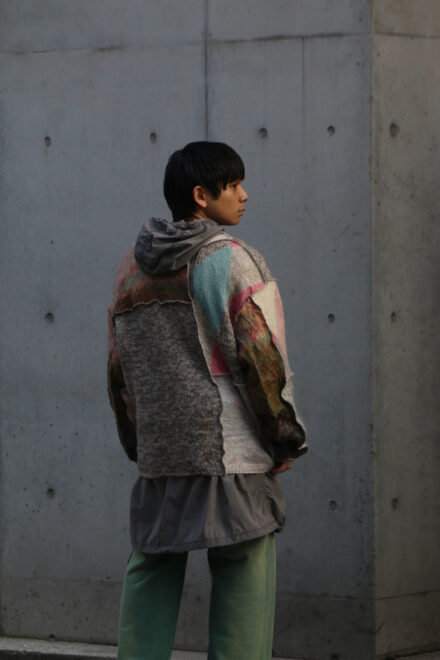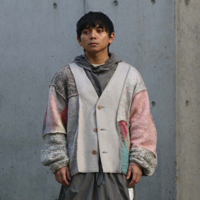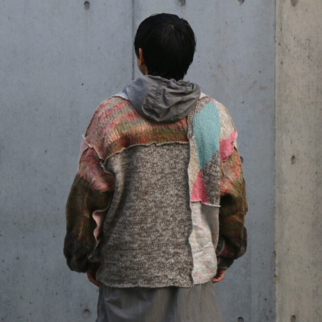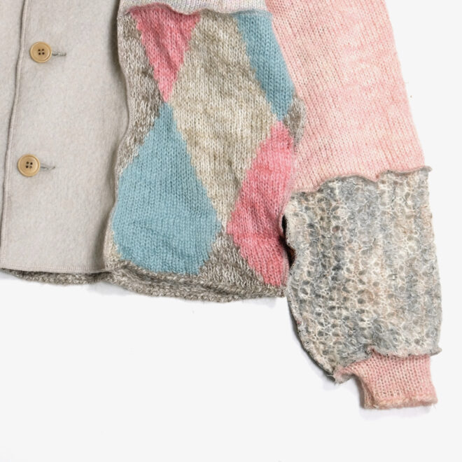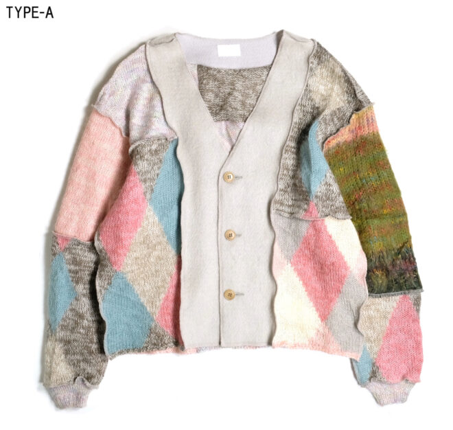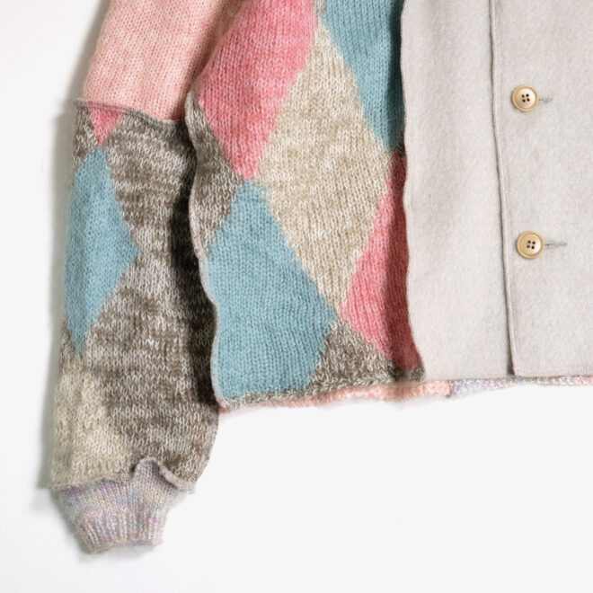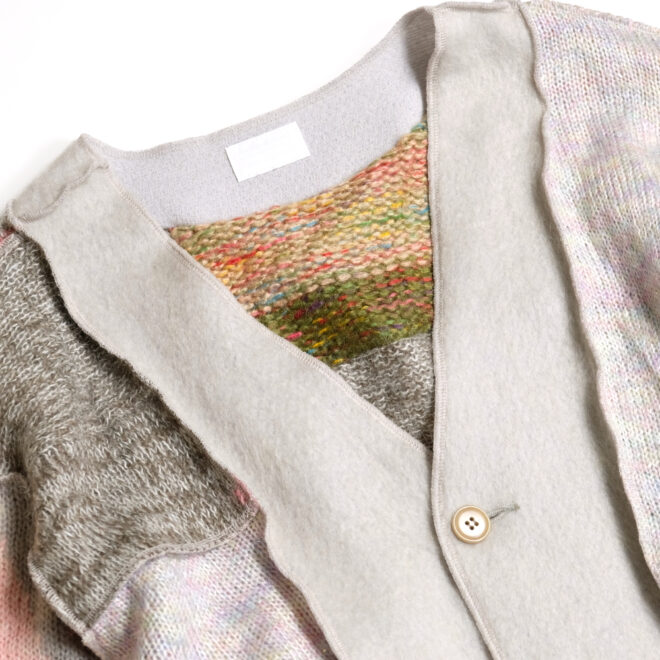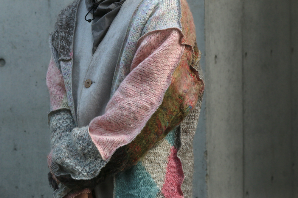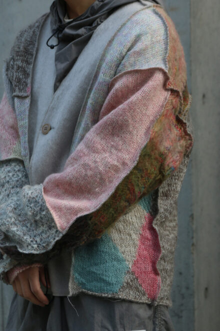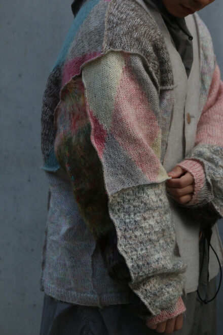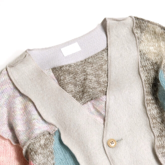 USEDのモヘアやウールのニットを再構築し作成されたカーディガン。