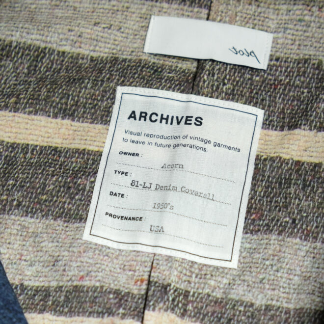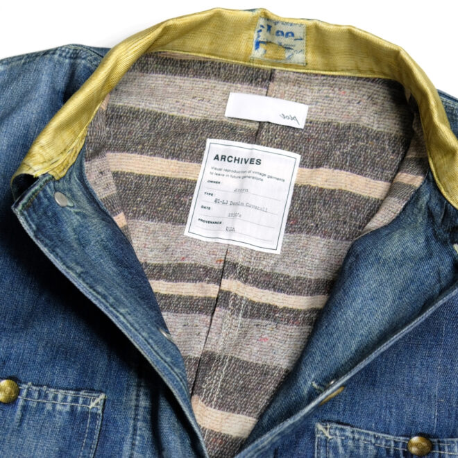 元ネタになているLeeの81-LJ DENIM COVERALLは裏地にはブランケット付きのカバーオールで、表地はもちろん、裏地や細部にわたって転写している、一見シンプルに見えて拘りの詰まったジャケットになっています。