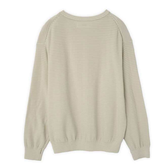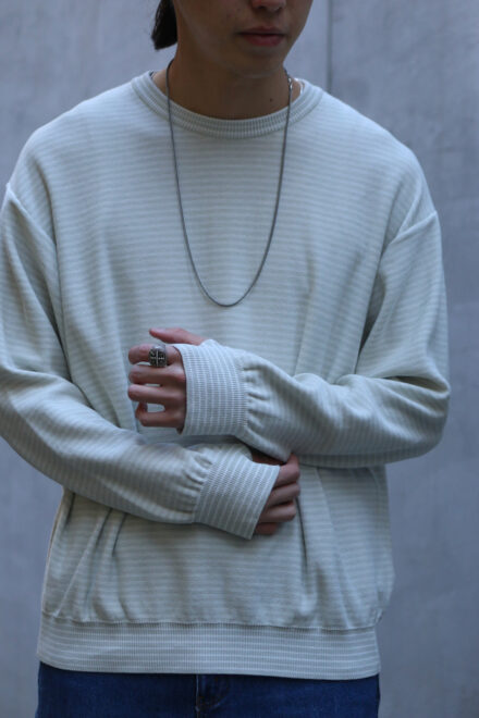 12G COTTONを使用した細いピッチのボーダークルーネックニット。
