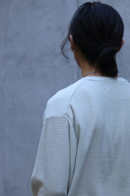 カットソーに比べても少し落ち着いた印象になります。