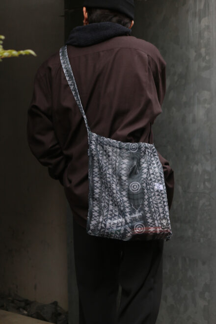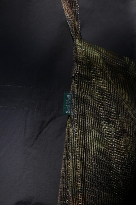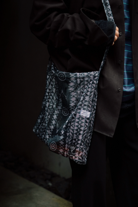 ヘビーウェイトのポリエステルメッシュ素材を使用したショルダーバッグ。