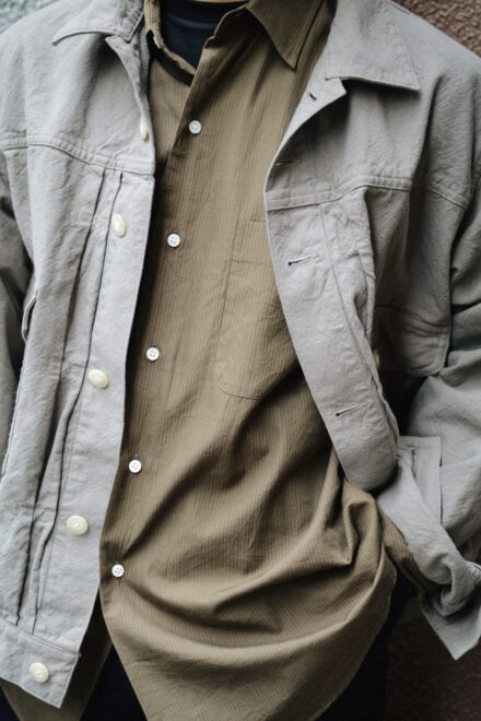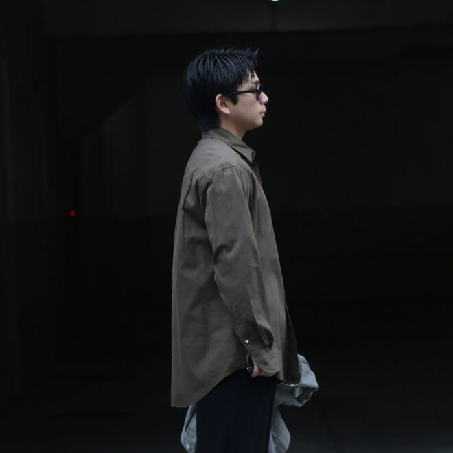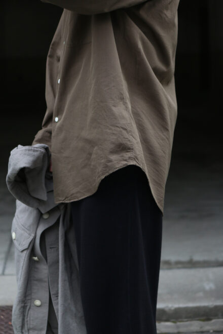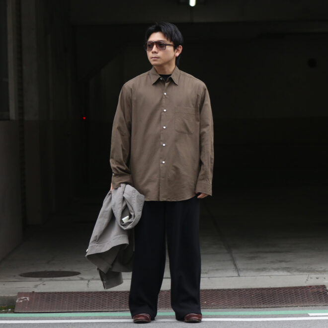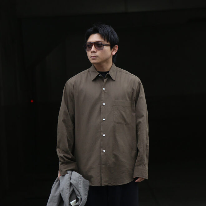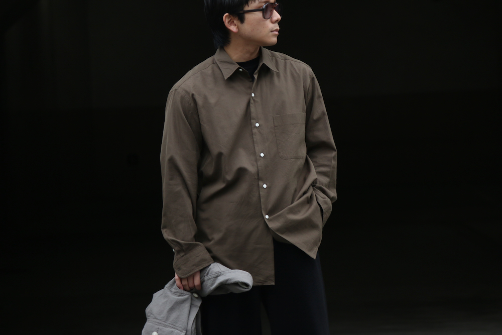 贅沢な素材使いのシャツを日常に寄り添い馴染ませるところにKAPTAINSUNSHINEの真骨頂を感じます。