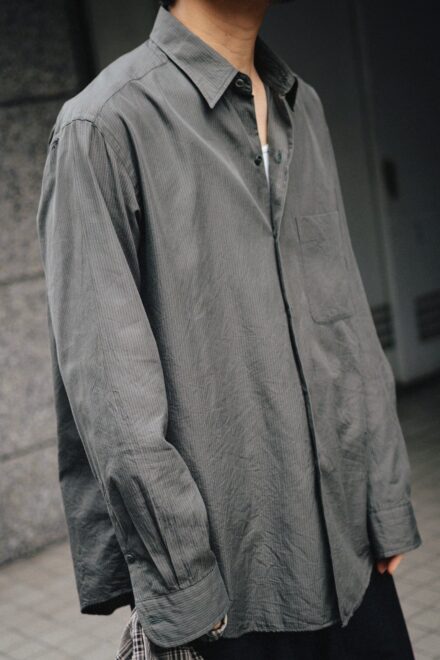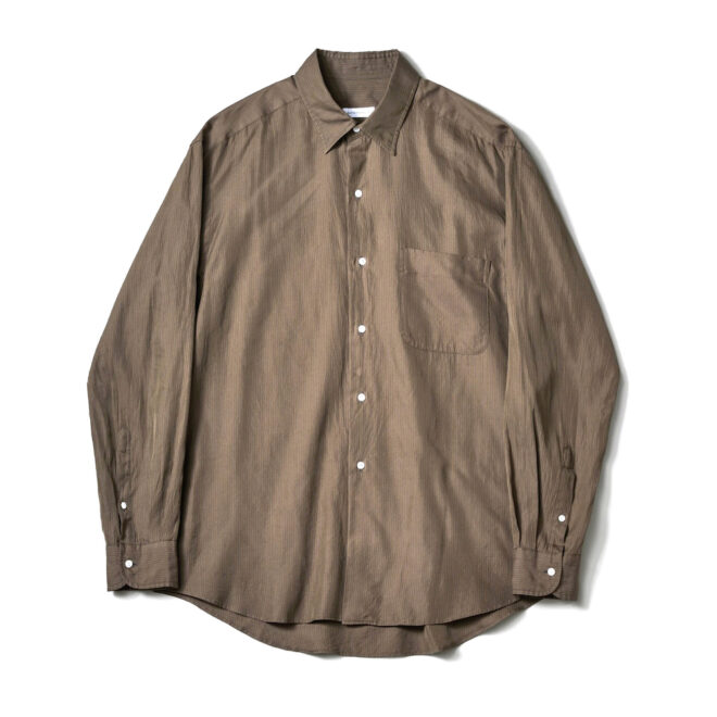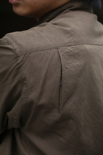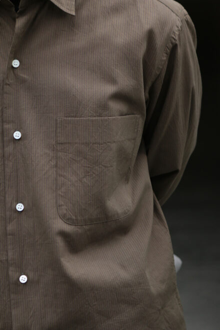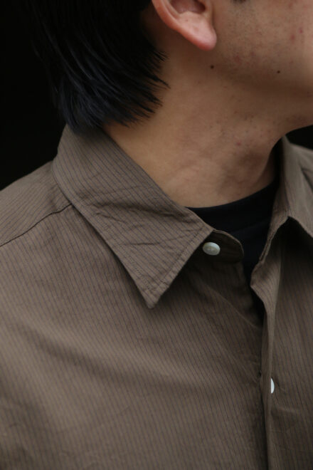 ヴィンテージのような佇まいながらも、まるでドレスシャツを纏っているかのようなREGULAR COLLAR STRIPE SHIRT。