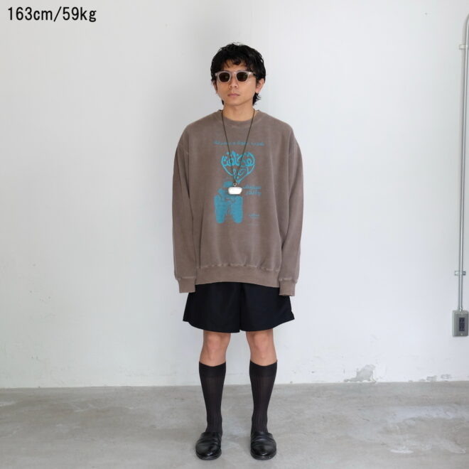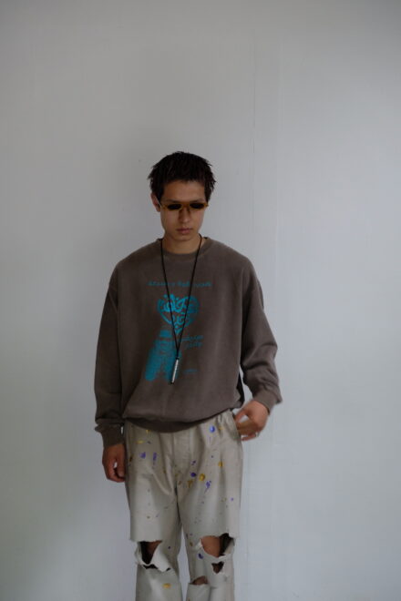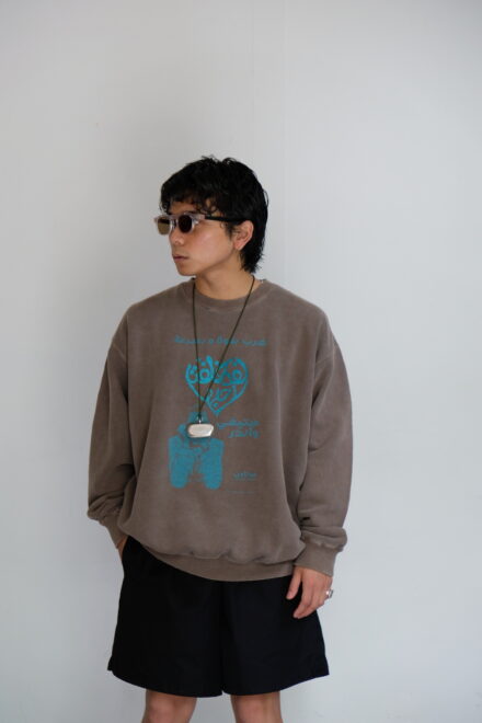 ハート型のグラフィックにはラメプリントを採用し、ボディは経年変化を感じられるビンテージライクなダメージ加工と柔軟仕上げを施し、オリジナルカラーに染め上げています。