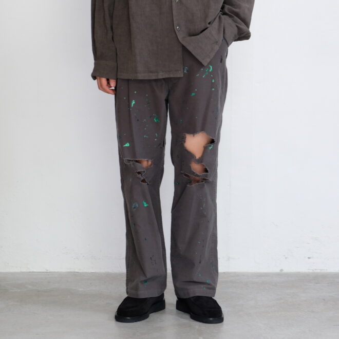 "ダメージの効いた軍パンが欲しい"というデザイナーさんの声から生まれた、スタイリングを飛躍的に格上げしてくれる一本となっております。