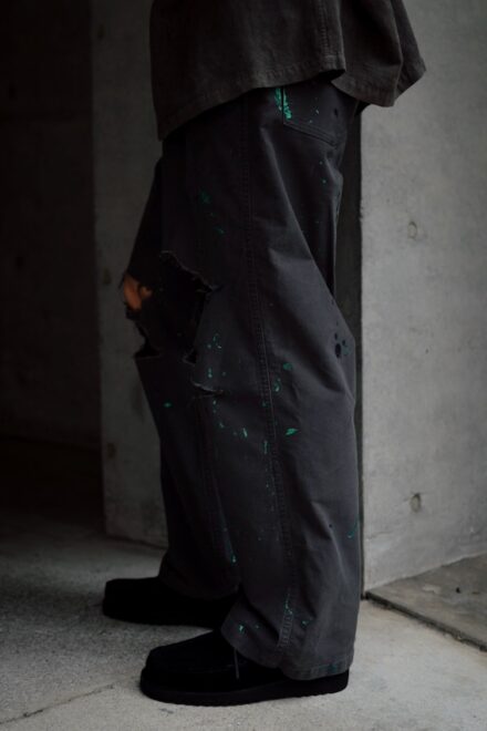 ストレートシルエットのファティーグパンツには、大胆なダメージ加工とともに、かすれ加工を施すことで、トーンが落ちヴィンテージライクに仕上げております。
