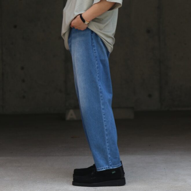 イージーデニムとはいえ、見た目はウエストラインの綺麗なデニムパンツ。
