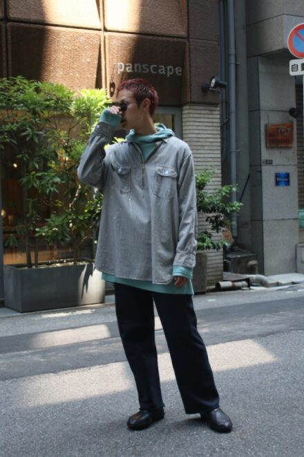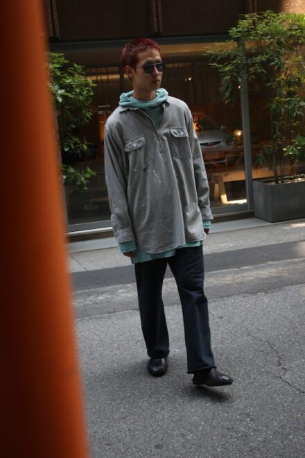 個人的に足元はブーツや艶のある革靴と合わす事でよりラフになり過ぎず、全体を締めてくれます。