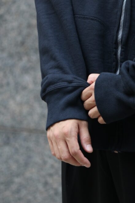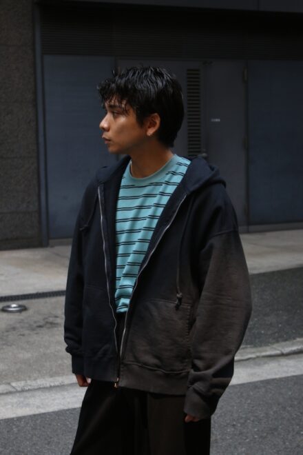 60年代までのスウェットに使用されていた染料を用いるこで、当時の経年変化するボディーの特徴を表現。