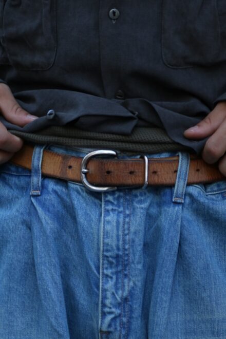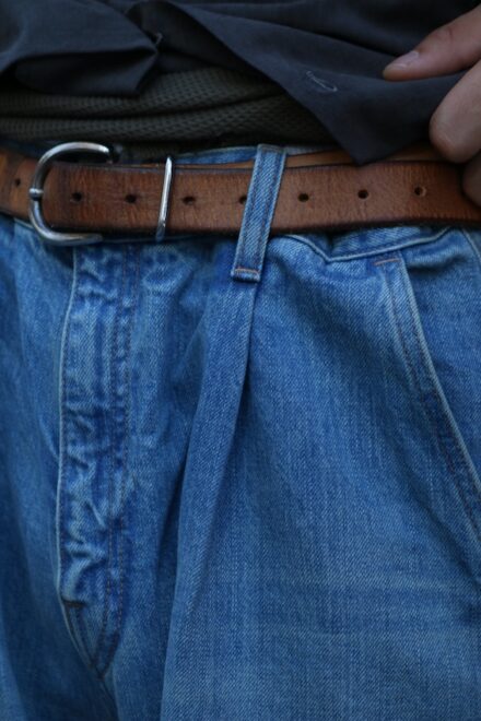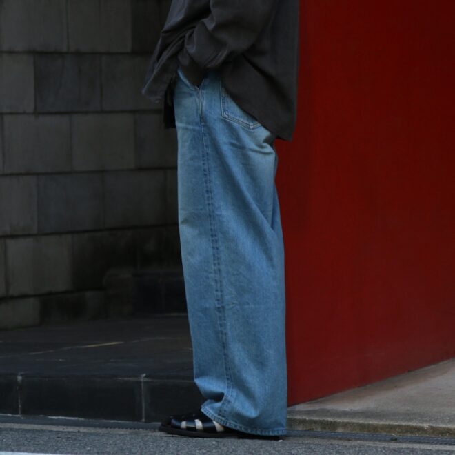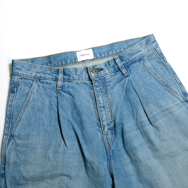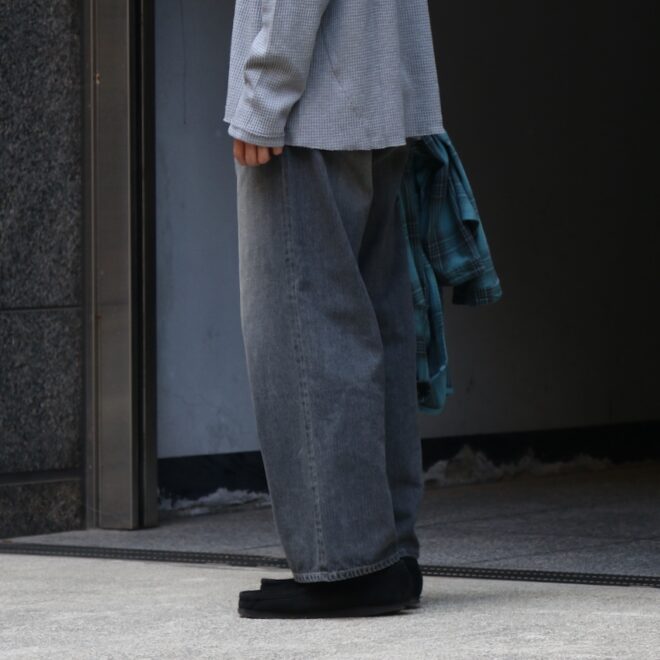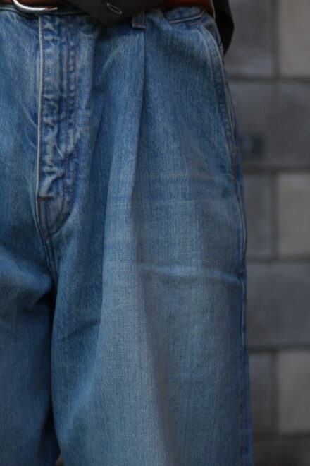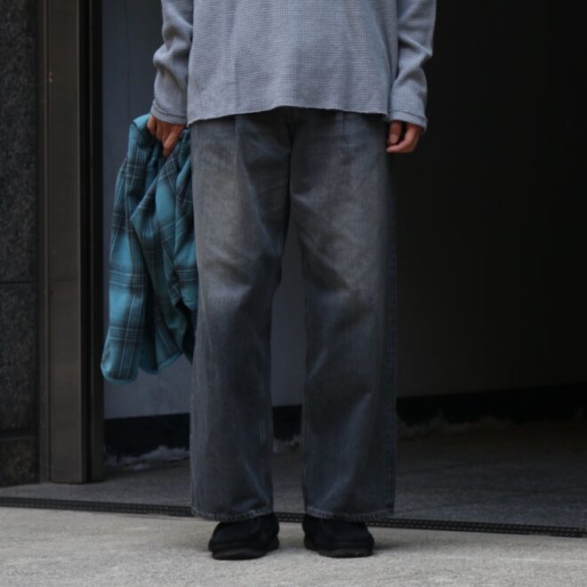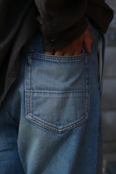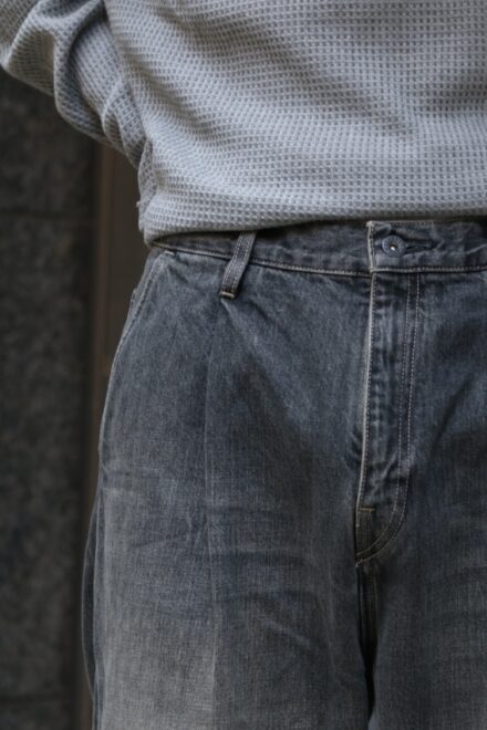 着古された風合いを持ちながらも、1タック入りのワイドシルエットでモダンに仕上げ、脇ポケットは手が入りやすいバイアスポケットを採用。