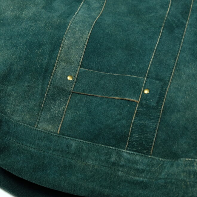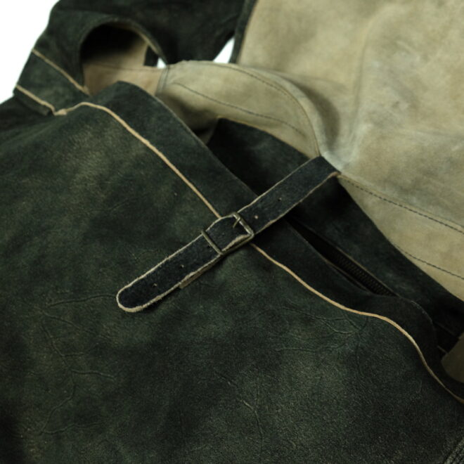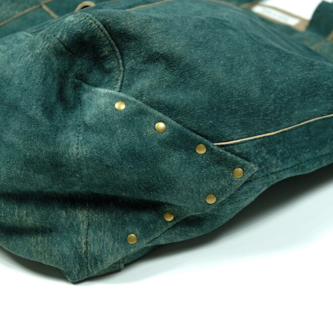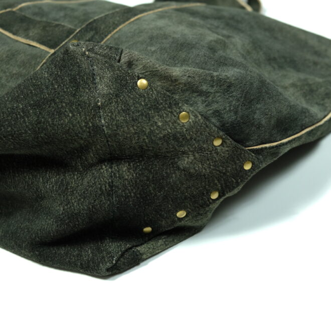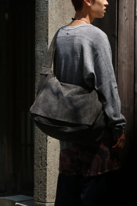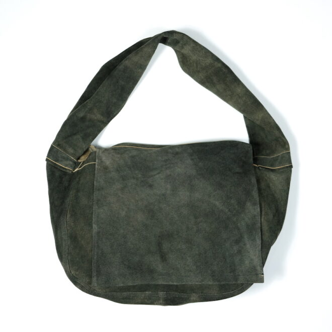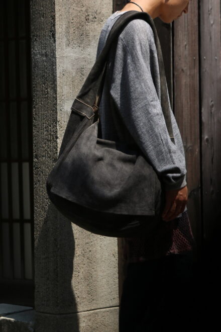 比較的耐水性が高く、キメ細かい起毛感が特徴の「SUEDE SPLIT LEATHER」を使用したショルダーバッグ。