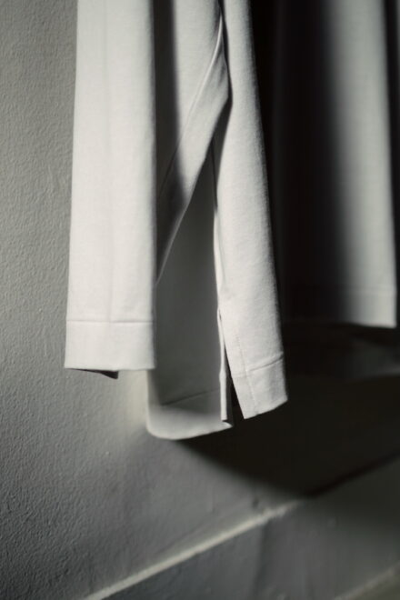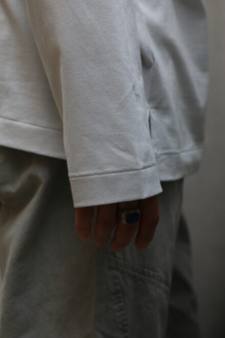 袖口のリブを排除し、ミニマルでリラックス感のある印象に仕上げております。