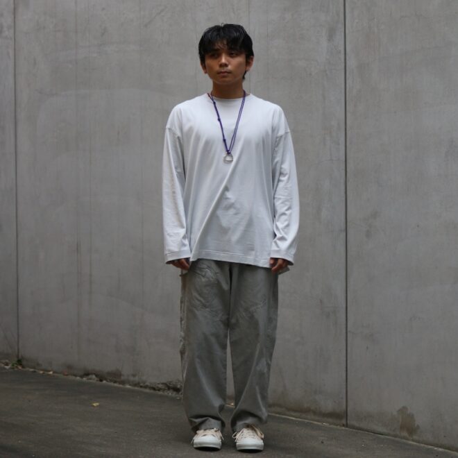 一枚での着用は勿論ですが、ベースのインナーとなるような大変使い勝手の良いアイテムとなっておりますので、是非最後までご覧下さいませ。