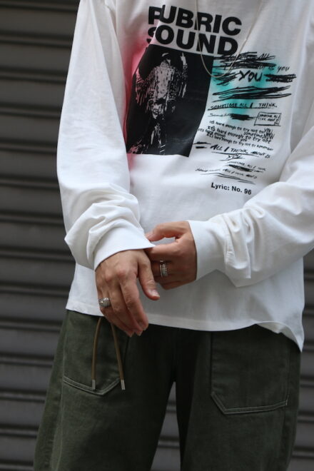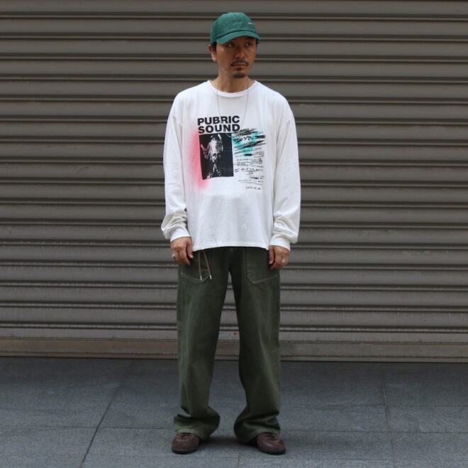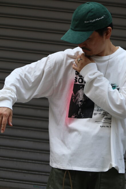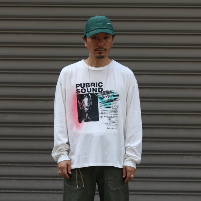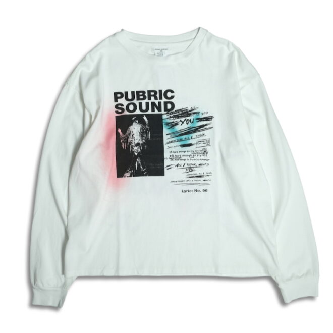 TOPS : minami Anderson PUBRIC SOUND BLEACH WHITE L/S-SHIRTS