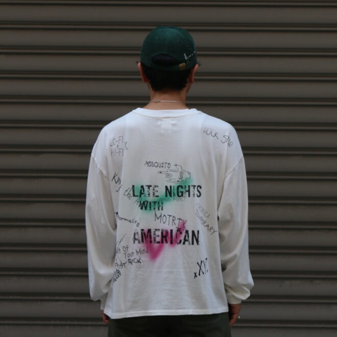 生地開発から加工の進化まで試行錯誤しながら作り上げたTシャツは、90年代にみられるバンドTシャツの数々のボディをオマージュしたオリジナルボディが使用されています。