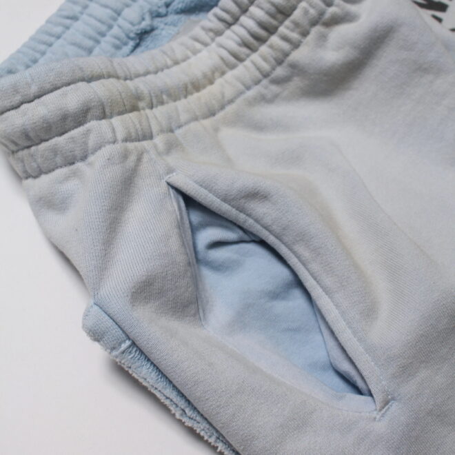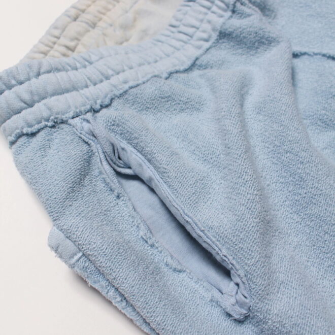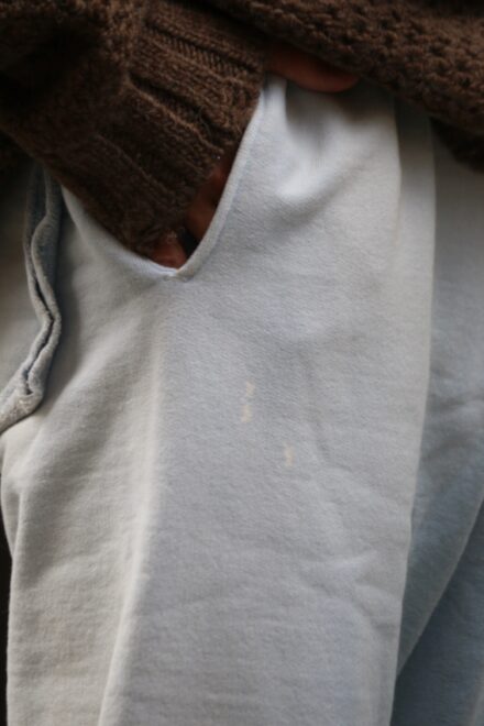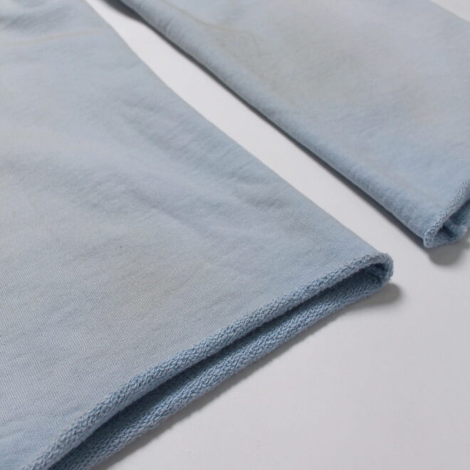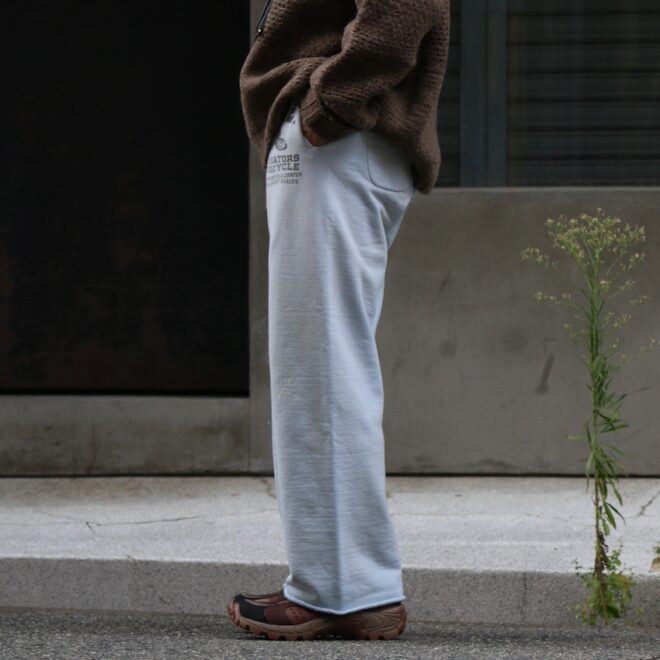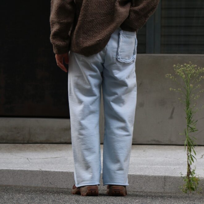オリジナルのヘヴィーオンス生地に、ゆったりとした股上の綺麗なシルエット、裾口のカットオフディティールによりファッション性を向上。