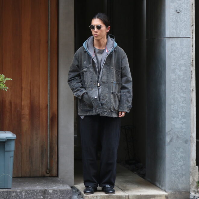 こちらのアイテムは、当時の空気感と完成されたワークウェアのクオリティを現代に落とし込んだ一着となっております。