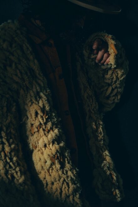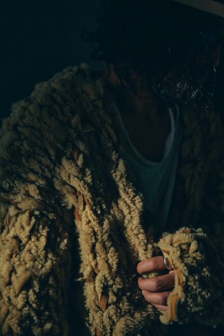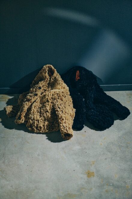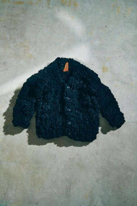 ムートンのアイテムを生産した際に出る端切れを無駄にする事なく活用出来ないかという考えのもと誕生したムートンカーディガン"チャーリー"。