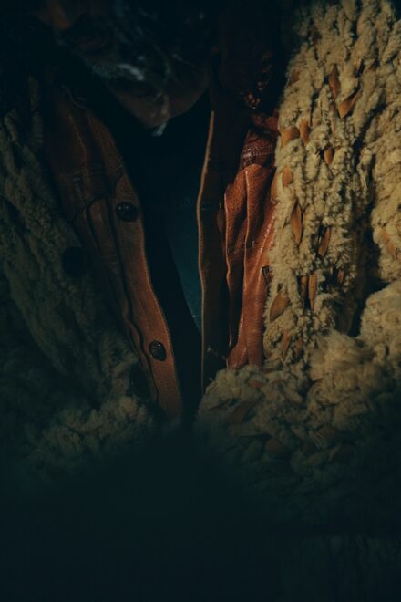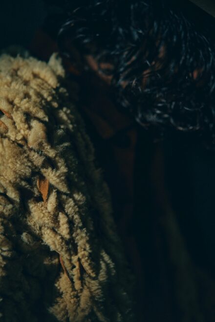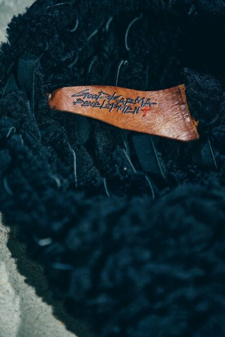 ムートンを細く裁断し、繋ぎ合わせ一本の糸にし、熟練の職人さんに手編みで一点一点丁寧に仕上げて頂きました。