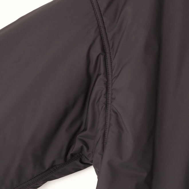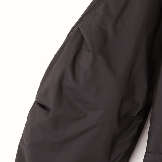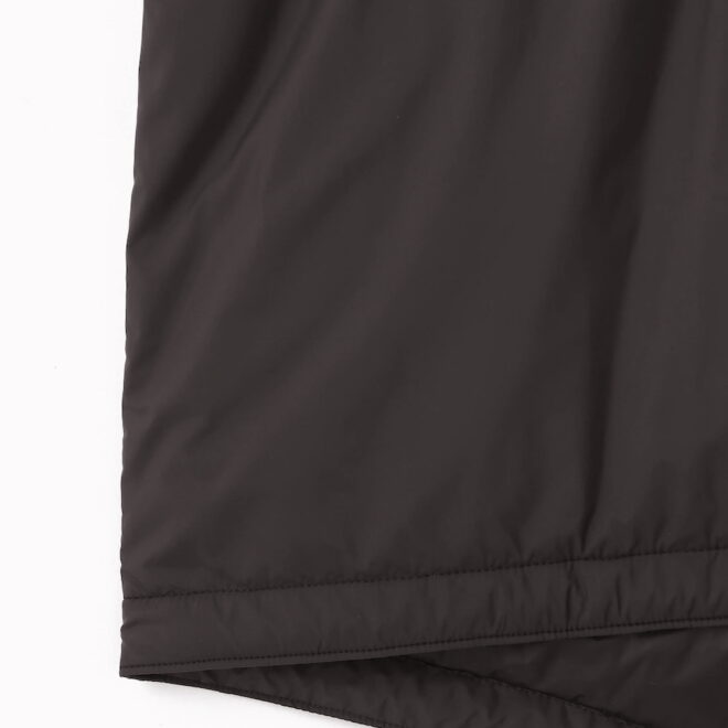 表生地には、 撥水性のある軽やかな素材を採用し、 プリマロフトの持つ軽さと滑らかさを際立たせています。