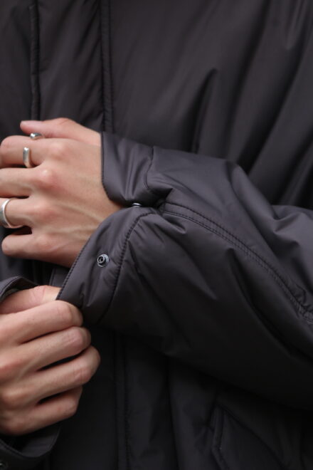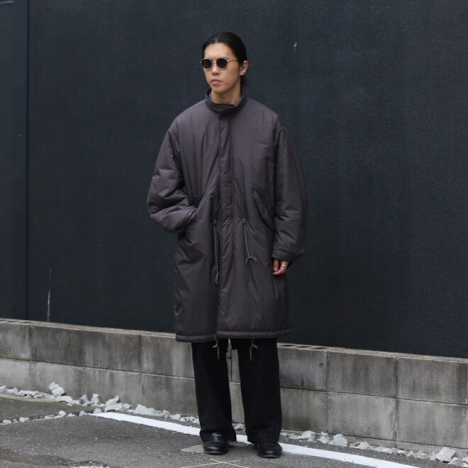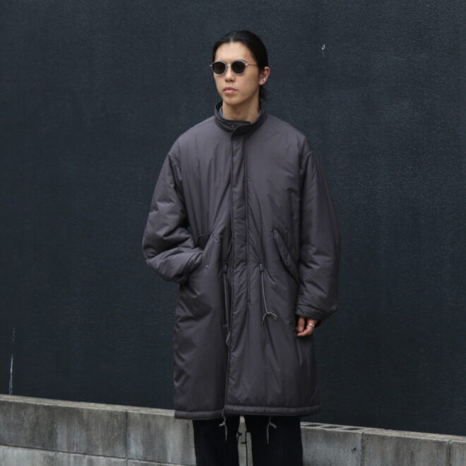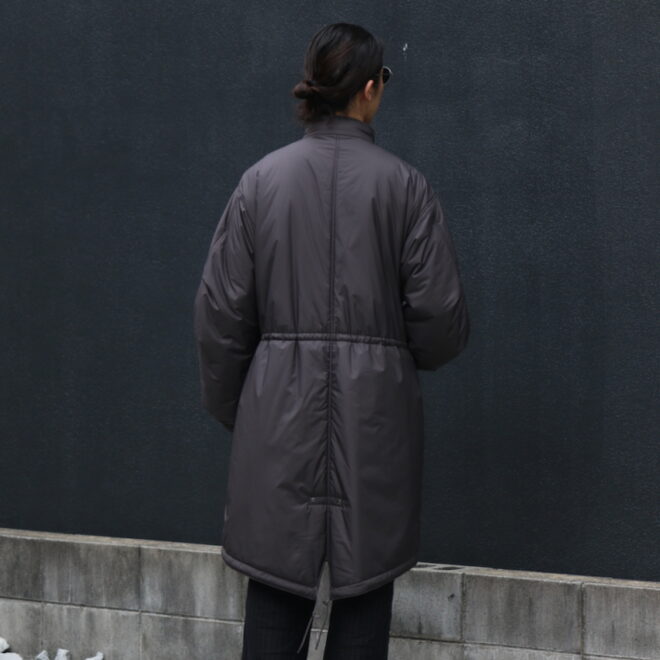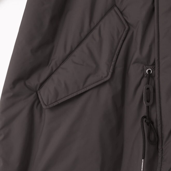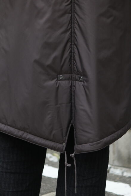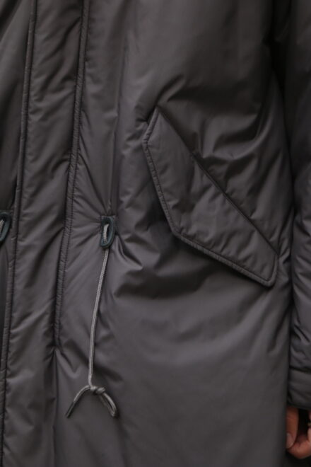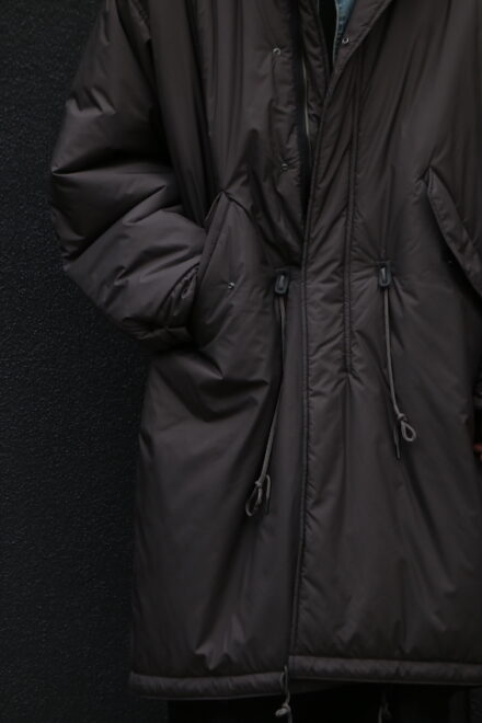 米国軍事用に開発された超微細マイクロファイバー素材であるプリマロフトを使用したフィッシュテールコート。