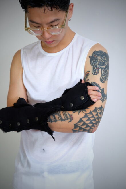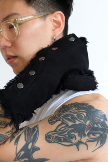 通常『WHIPPLE/ウィップル』 には、真鍮カラーのスナップボタンが使用されていますが、今回オールブラックの『WHIPPLE/ウィップル』を作成して頂きました。