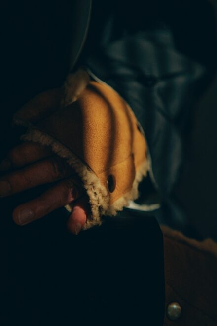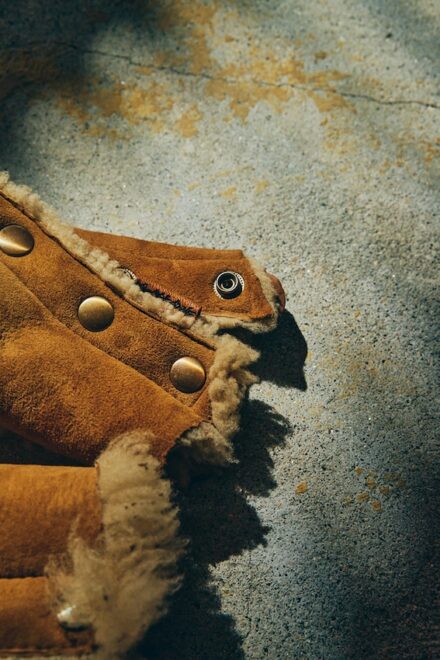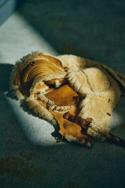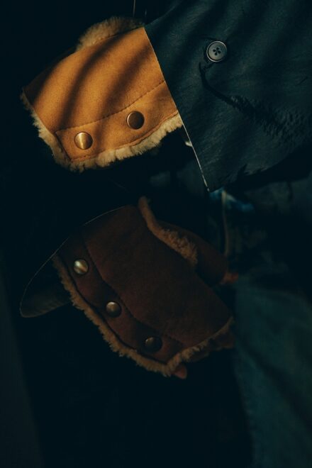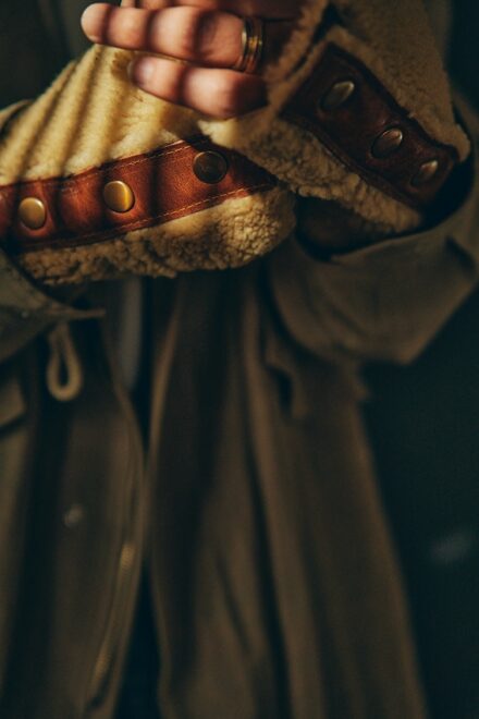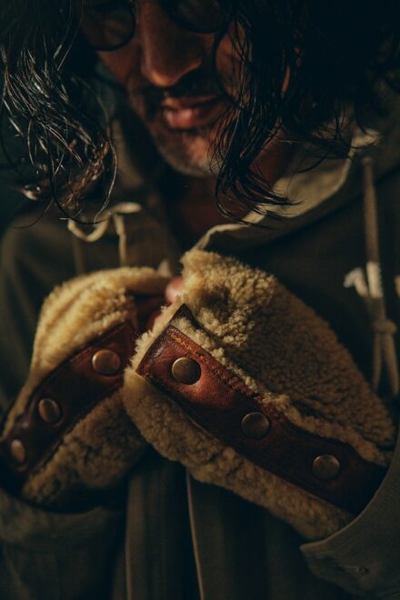 リバーシブルムートントラッカージャケット"LUKE"の前立てから着想を得て、バイヤー時代にカリフォルニアはヘイワードのウィップルロードにて入手したムートングローブをモチーフに製作致しました。