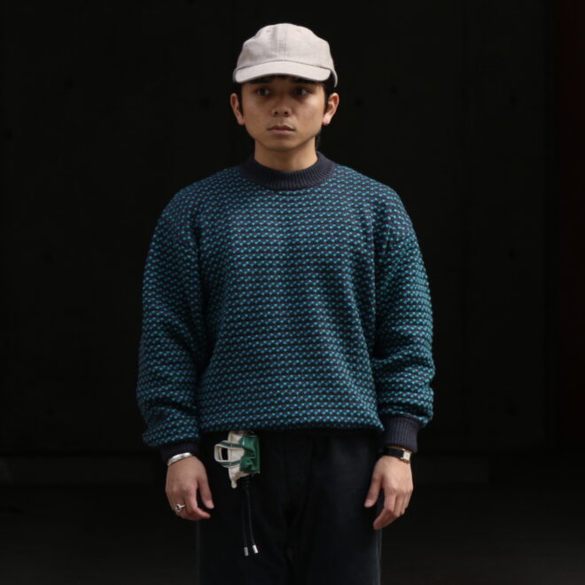 L.L.BEAN定番のウールのバーズアイニットをベースに、軽やかなコットン・ポリエステル混紡糸を使用。
