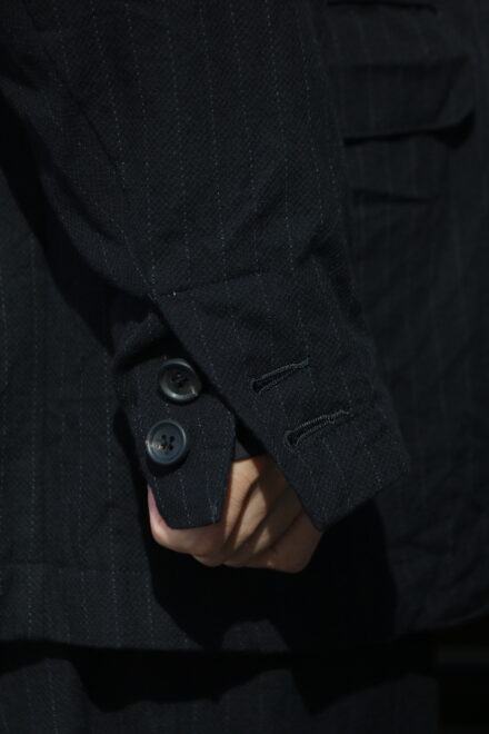 同色調のピンストライプは、地の色のダークトーンに馴染みつつ、適度なアクセントを付けてくれ、重い印象にならない独特の雰囲気が楽しめます。