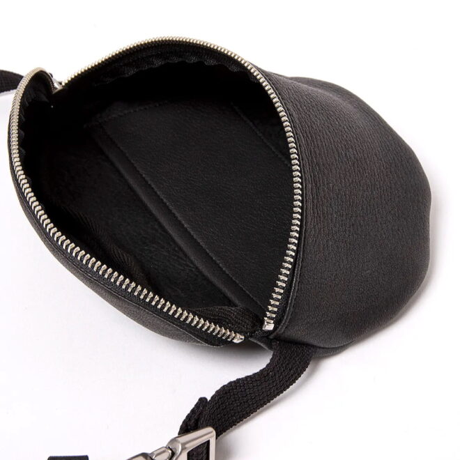 鍵やスマホ、財布などのサイズのものが収まるベーシックな小型のウエストポーチになります。