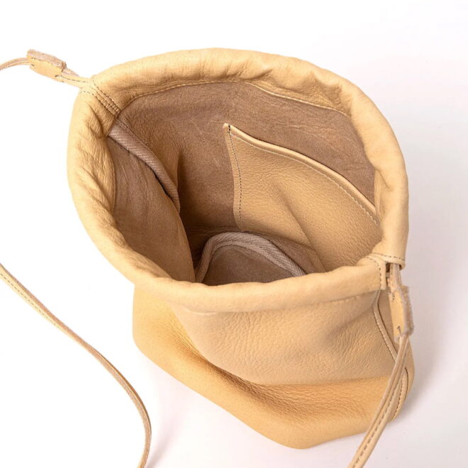 ディアスキンを使用したドローストリングポーチ。
