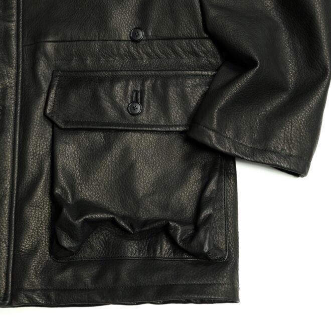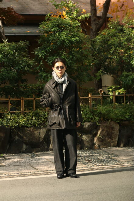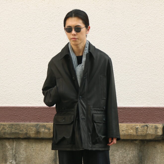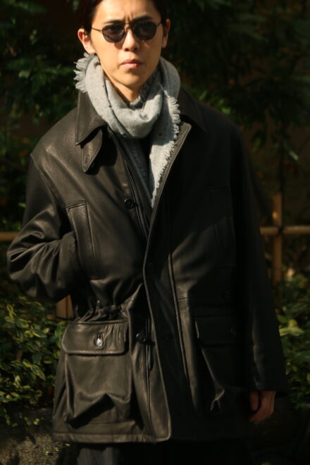 ディアスキンのハンティングジャケットというワークな力強さは漂わせながらも、しっかりと都会の洗練さも感じるKAPTAIN SUNSHINEが提案するワークジャケット。