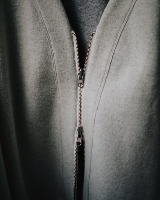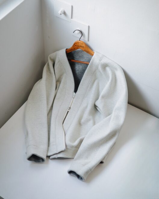 高密度に織られたウールのリバーシブルジャージー素材を使用し、生地の特徴を活かしフラットシームを採用。