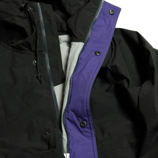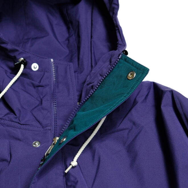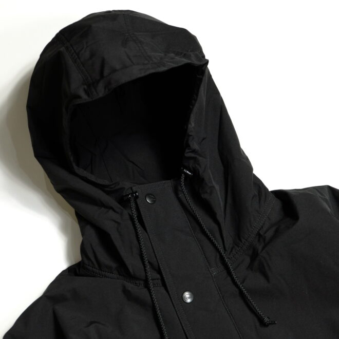 フロントはダブルジップに加えてスナップボタンを施し、首元・裾にはドローコードを配し、さまざまなスタイリングでお楽しみいただけるアイテムです。