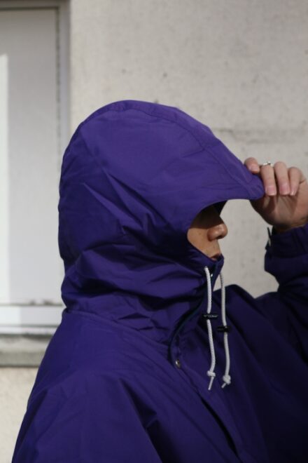 80'sフード付きパーカをベースにデザインしたシェルジャケット。