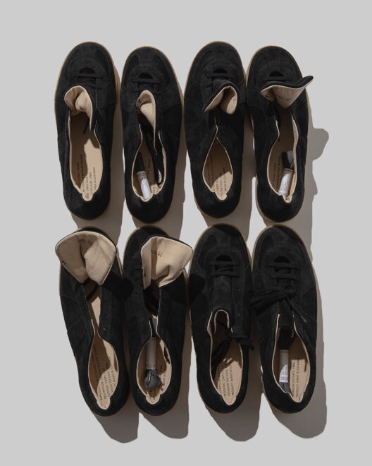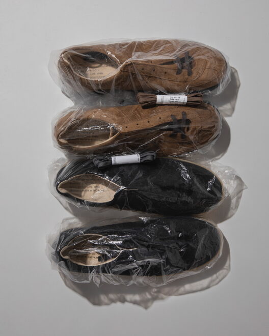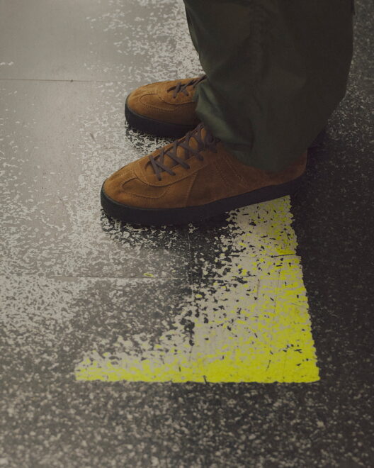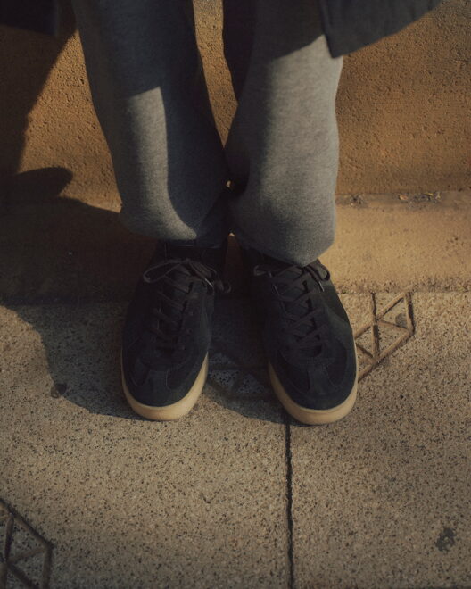 〈REPRODUCTION OF FOUND〉の現代的解釈により蘇ったトレーニングシューズの名作「GERMAN TRAINER」をベースに、〈hobo〉の美意識によってアレンジされた別注モデルが登場。