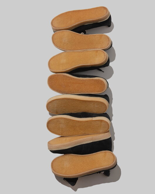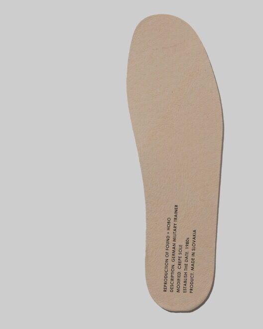 アウトドアギアのような堅実さと機能性を目指し、天然クレープソールを採用することで、 柔らかな履き心地と静音性、天然素材ならではの温かみ、そして高いグリップ力を兼ね備える。