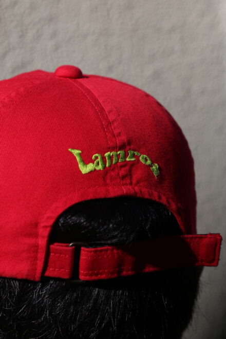 今シーズンは、キャップで別注を作成して頂き、バックの刺繍のカラーを、LR by RAY COAL から観える『靭公園の新緑』をイメージしたカラーリングを取り入れさせて頂きました。