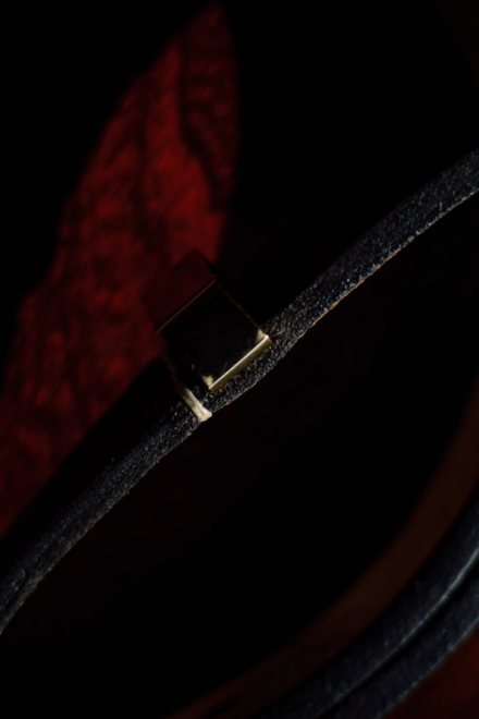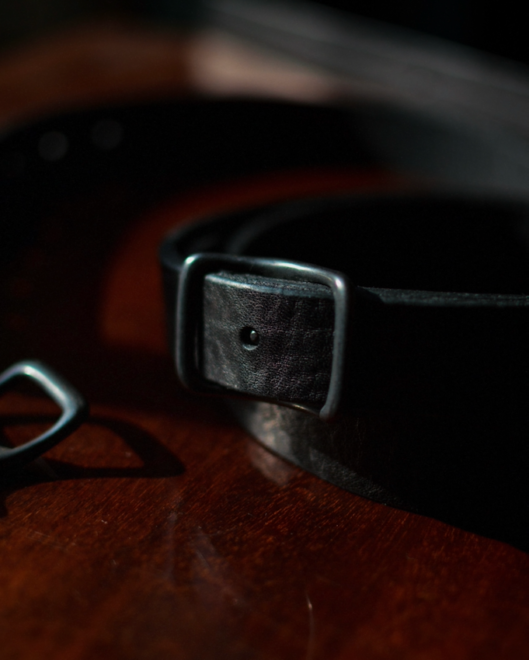 バックルは使用と共に奥の方に見え隠れする真鍮の色が奥行きを持たせ、静寂ながらも力強く美的な、スタイルを選ばない一本。
