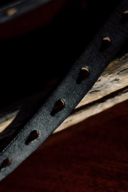 オールブラックに仕上げたBLACK SERIES NAVELは、ワンホールベルトのようなソリッドなデザインに、シボ感のあるノーブルなイタリア産のベジタブルタンニンレザーを使用。