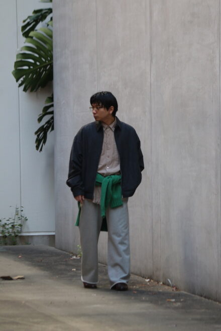 というのも、中綿のアウターはそれだけで終わってしまうので面白みが無いと思っていましたが、逆にそれがパンツ選びや、小物選びの重要度が何段階も上がるんだということに気付かされました。