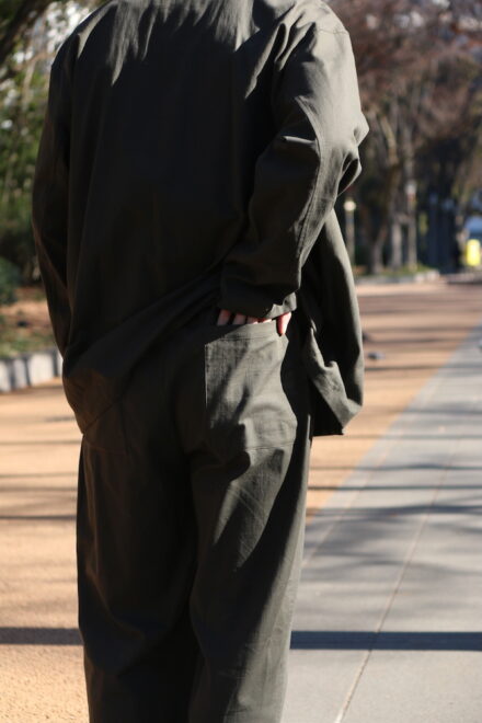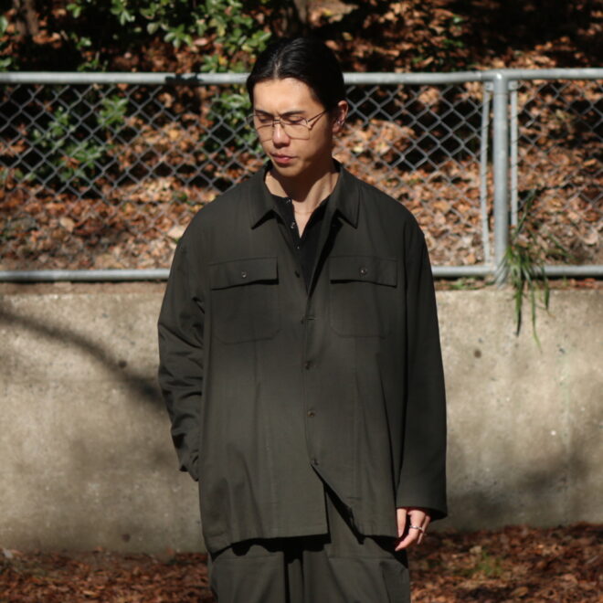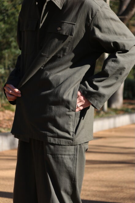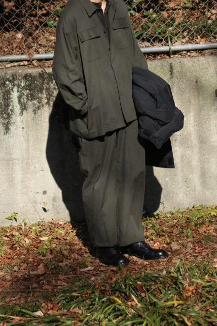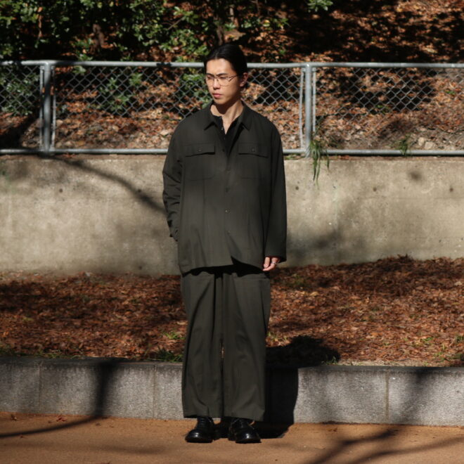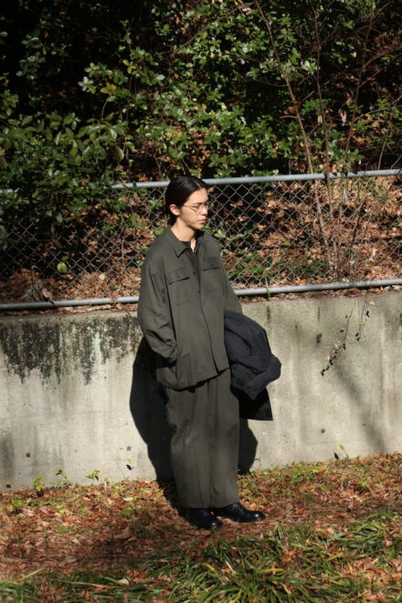 セットアップという言葉自体には、どうしても少しフォーマルな印象や、ミニマムなイメージをもたれやすいですが、こちらのYOKO SAKAMOTOのセットアップは、限りなく自然体に。