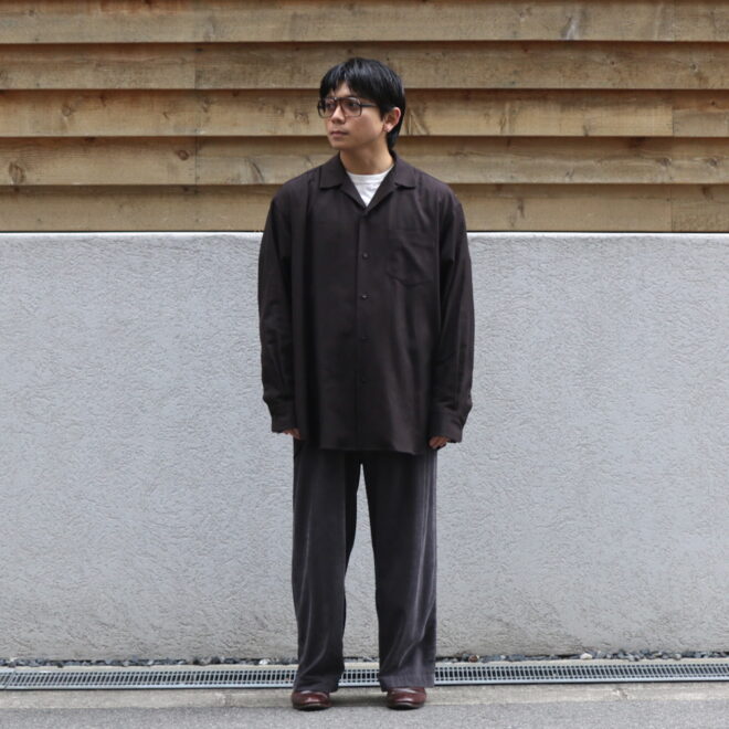 さて本日は、前回に引き続き『yoko sakamoto』より入荷してまいりました、定番のオープンカラーシャツのご紹介です。