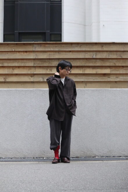 上品なパターンメイキングで有りながら、程よくドロップしたショルダーライン、ゆったりと広い身幅、力の抜けたルーズなサイズ感が特徴的です。