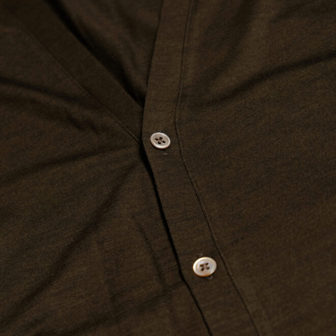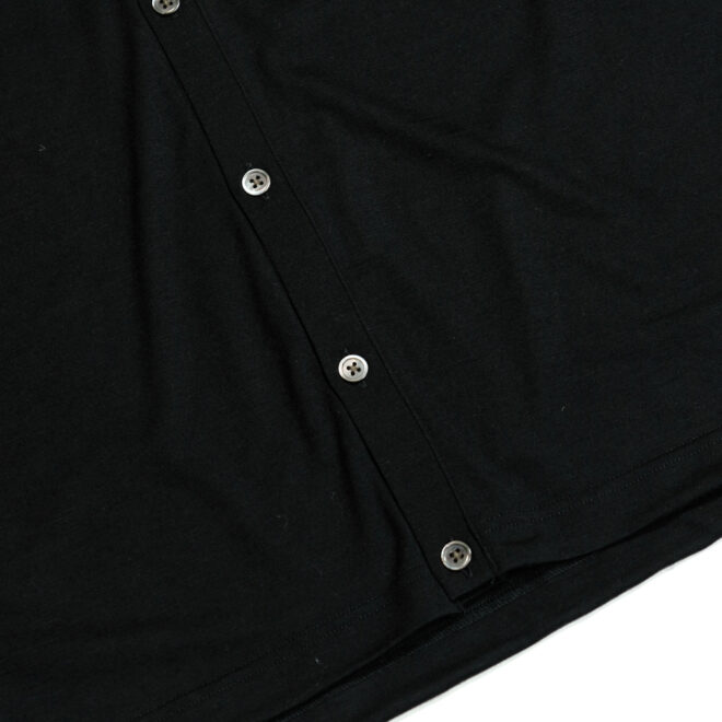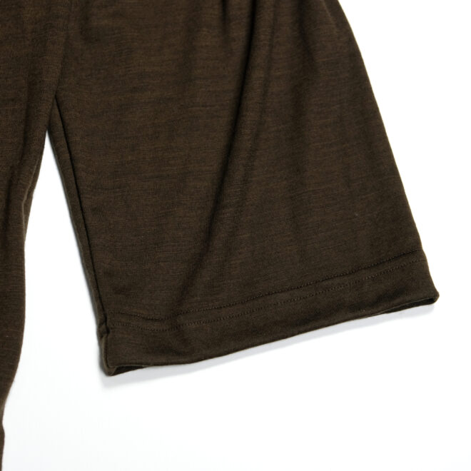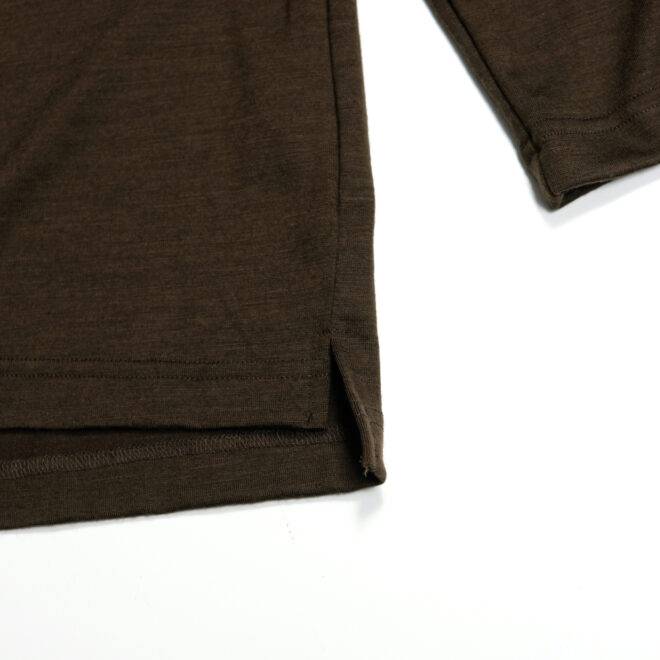 その素材を世界のメゾンブランドからもオファーの絶えない日本屈指のウール地産地である尾州で紡績し、柔らかな質感と上品な微光沢持った天竺に編み上げられています。