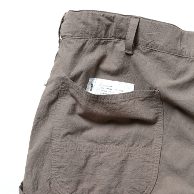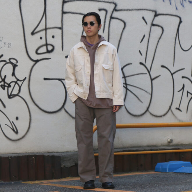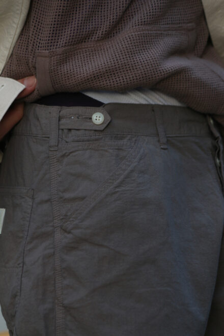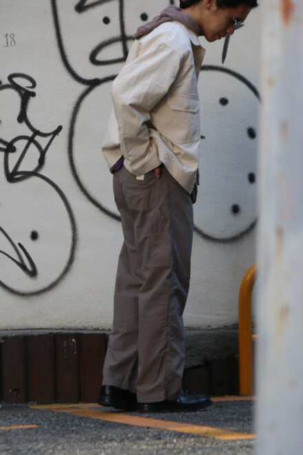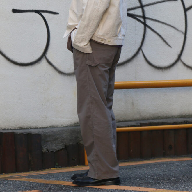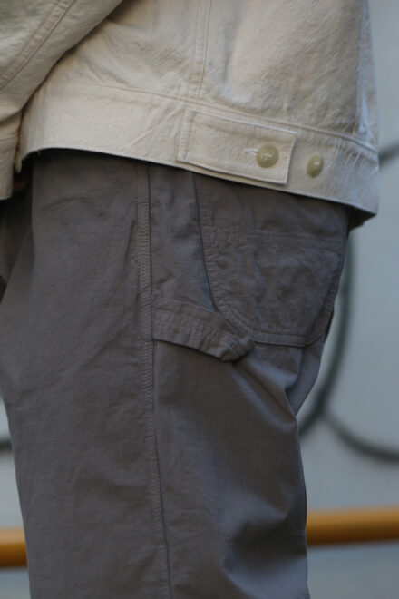 某ワークウェアブランドの1980年代のペインターパンツをベースに再構築した一本で、3本針によるステッチワークや力強いディテールなど、オリジナルの無骨な雰囲気はそのままに、現代的な快適さを加えられています。