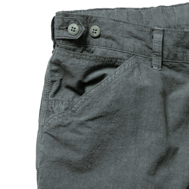 前開きはボタンフライに変更し、ヴィンテージライクなルックスとリラックスした穿き心地を両立しています。