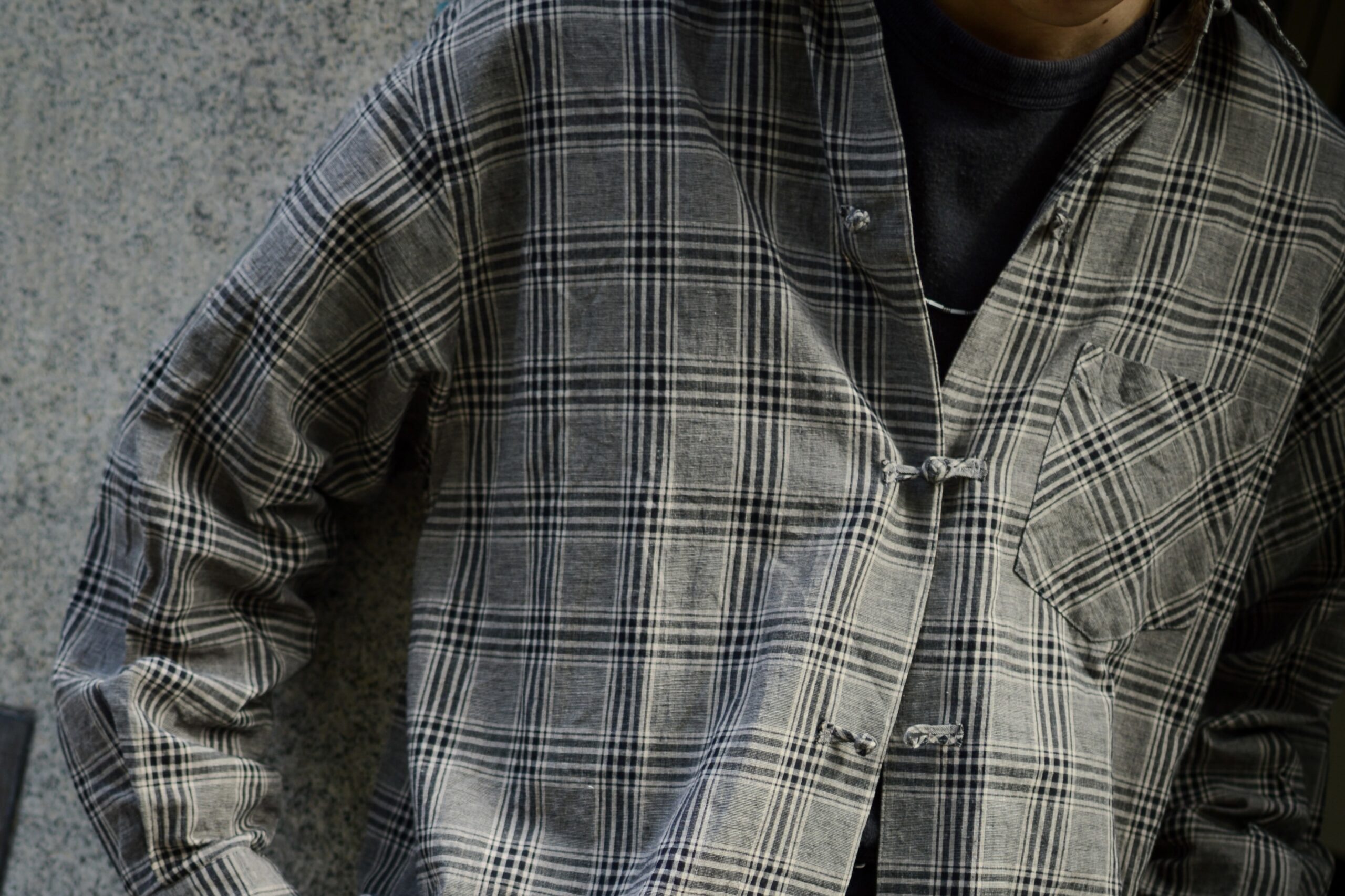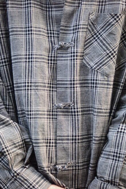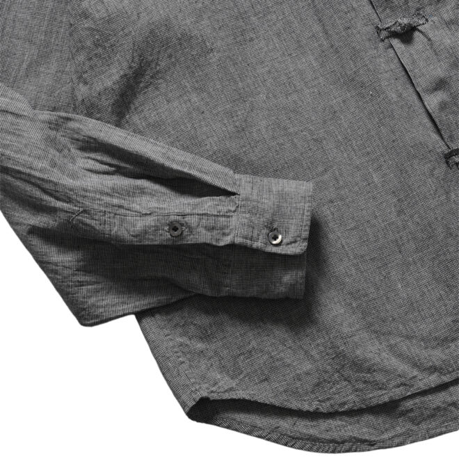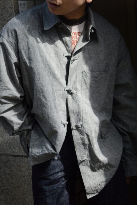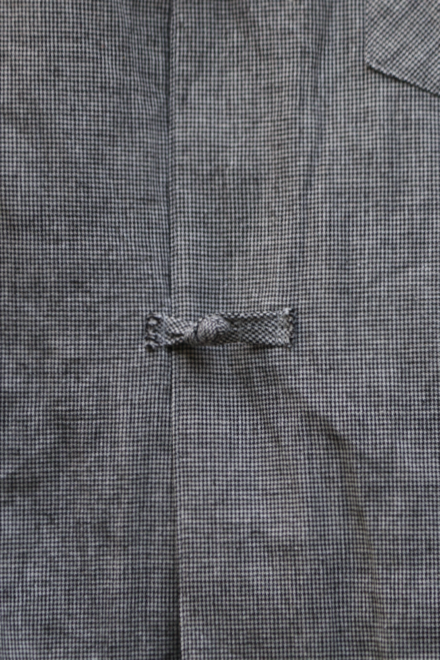 最大の特徴は、共生地で極限まで細く小さく仕立てたハンドメイドのチャイナボタン。